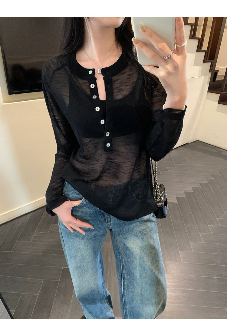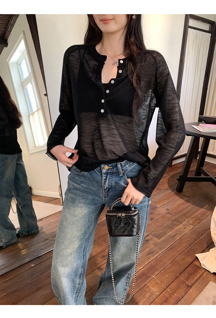 Chic Sheer Knit Long Sleeve Cover-Up for Women, Lightweight and Breathable