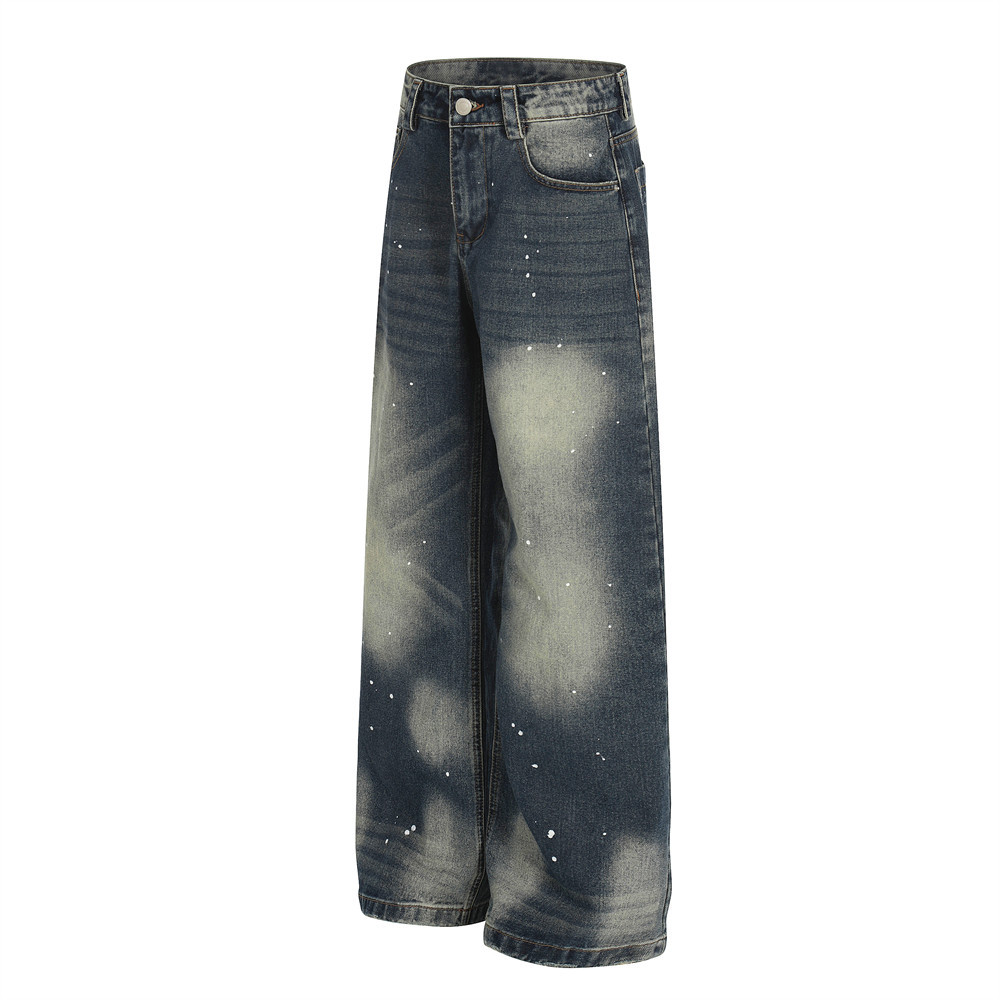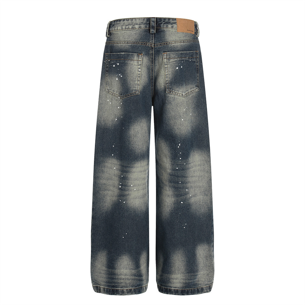 Color blocked white denim straight leg pants