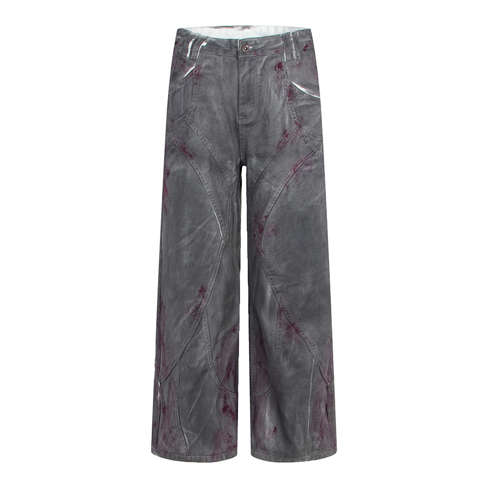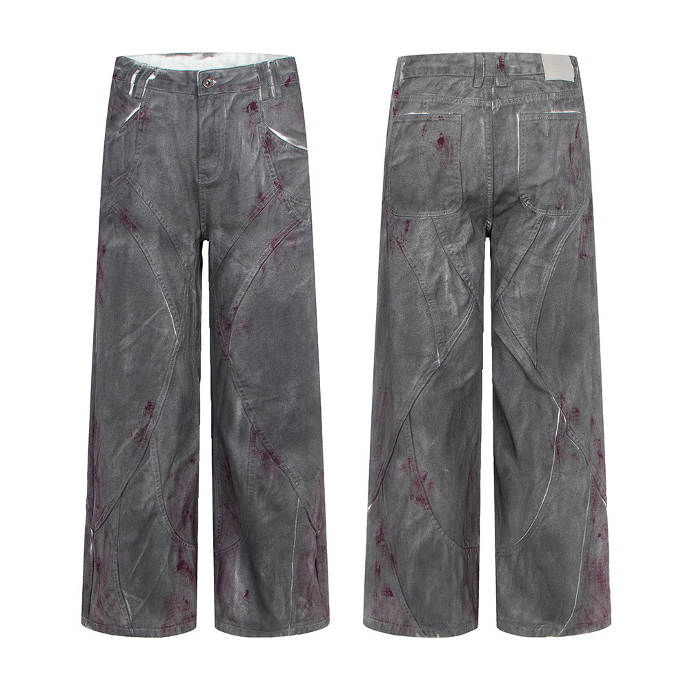 Distressed Dyed Denim Jeans, Trendy Brand, Loose Straight Leg Wide Leg Pants