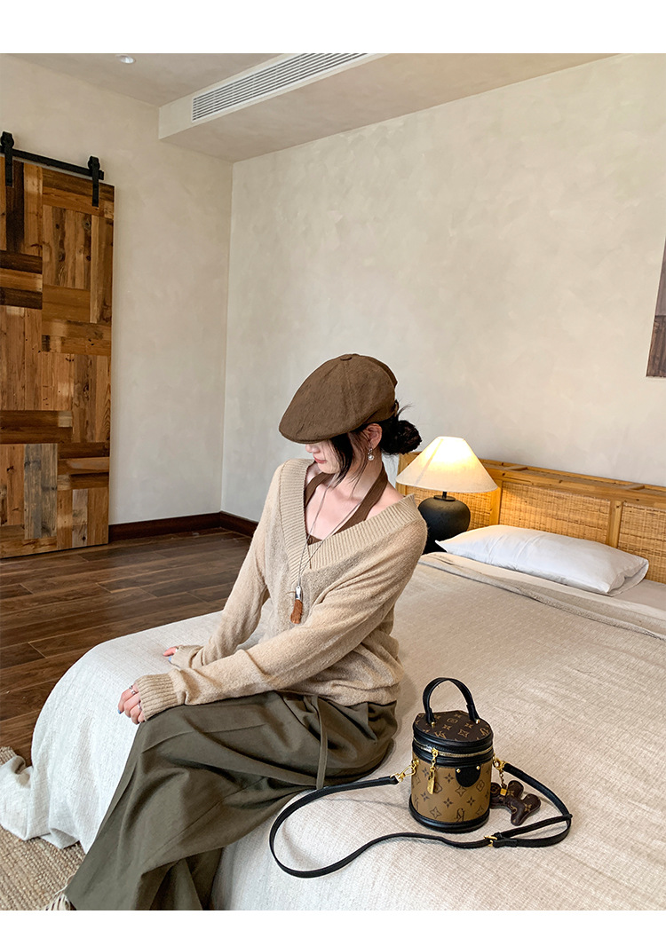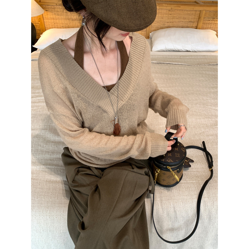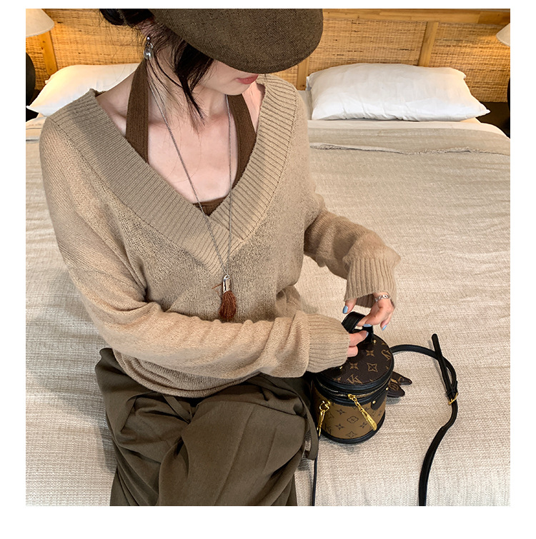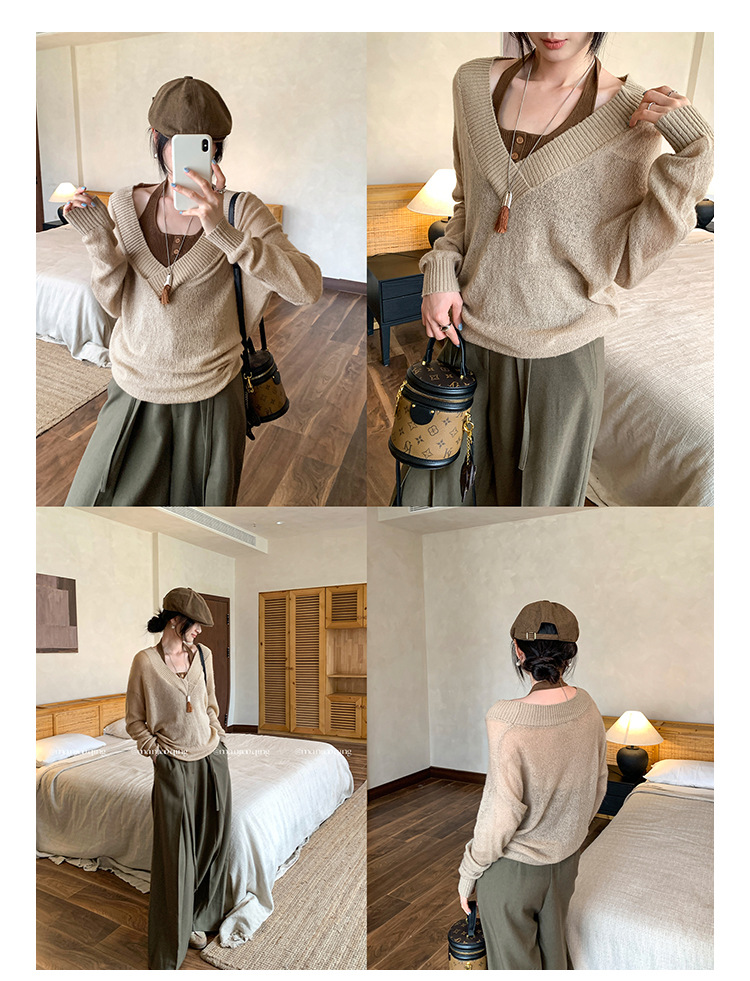 Be the first to review “Faux Two-Piece Wool White V-Neck Knit Sweater for Women, Loose Bohemian Style Angora Top”