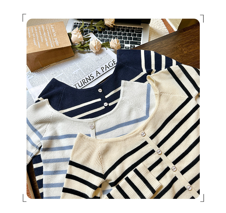 Color: White & Blue Stripe, Apricot & Black Stripe, Navy & White Stripe