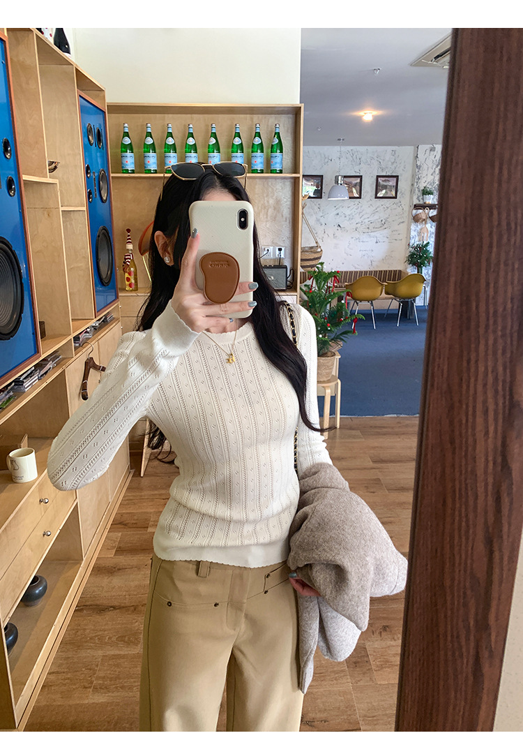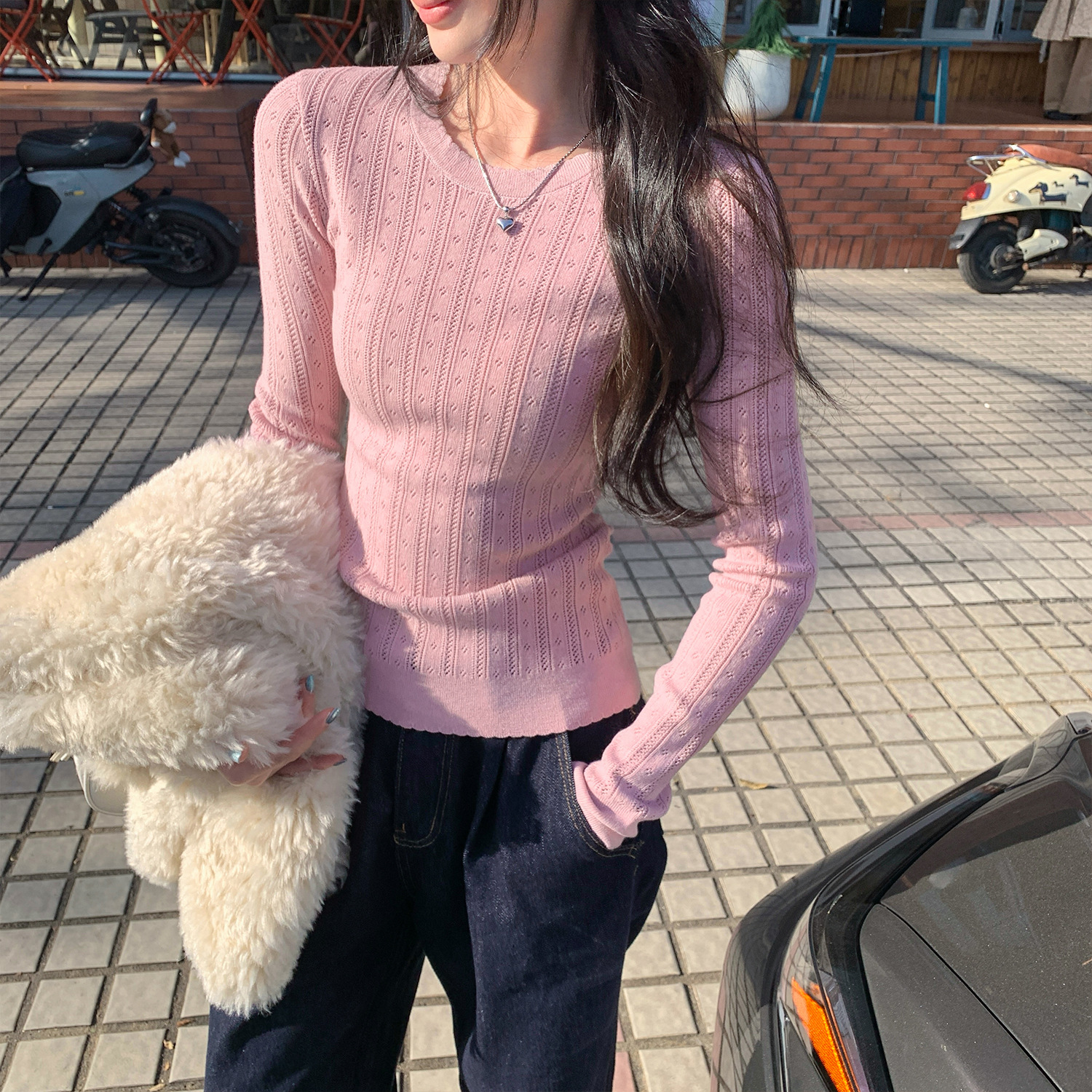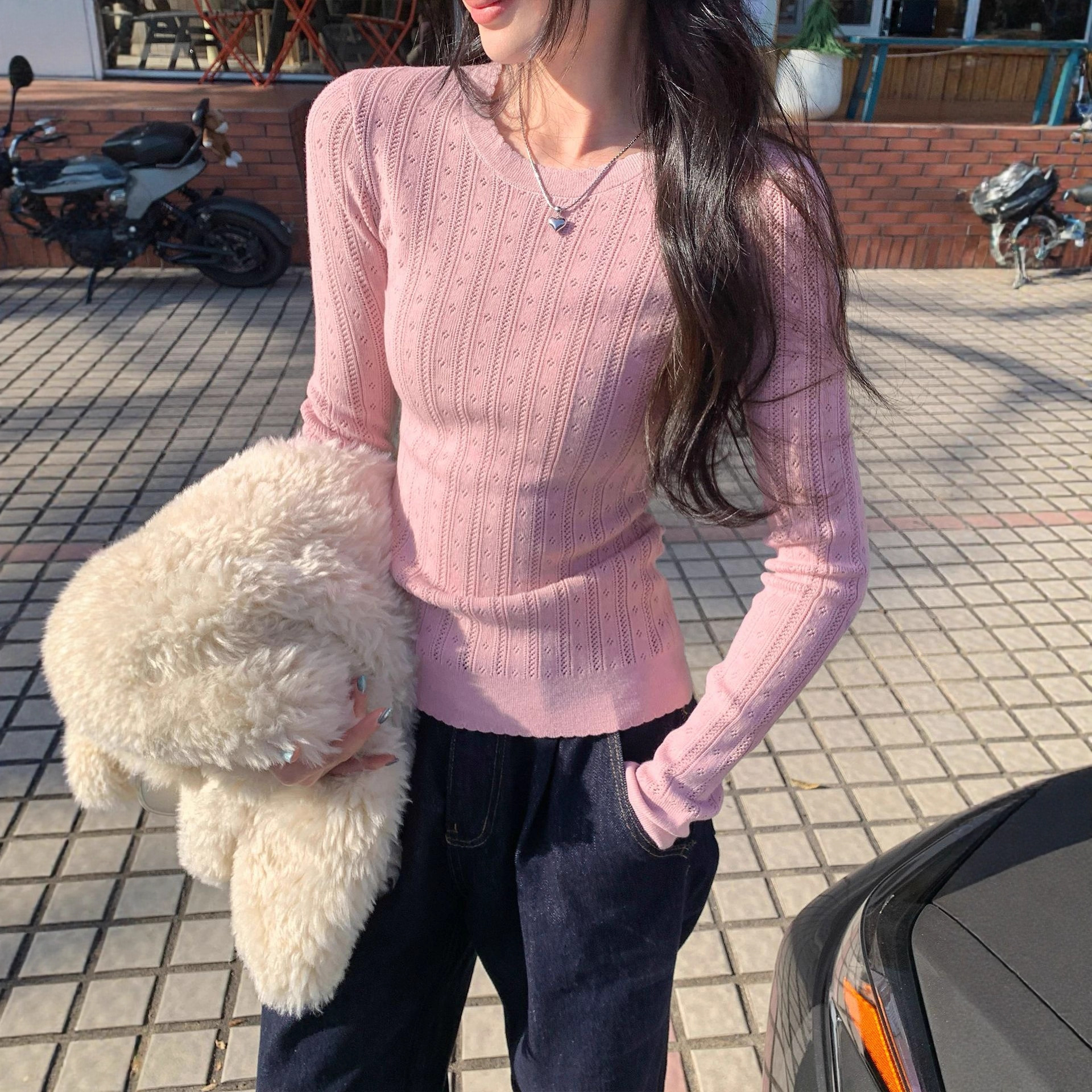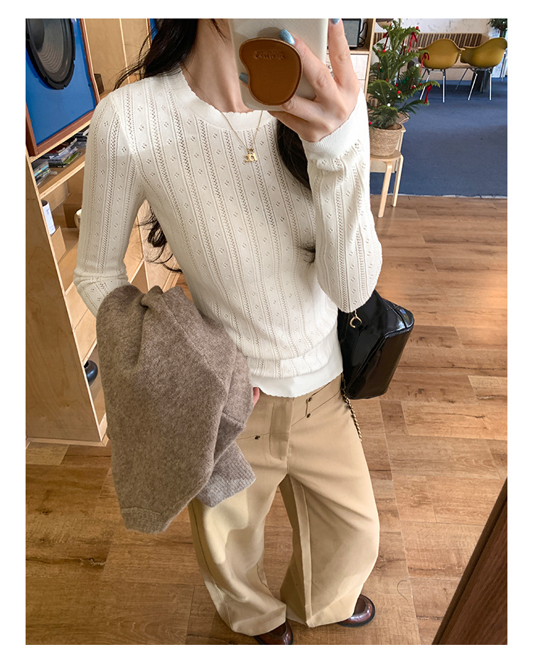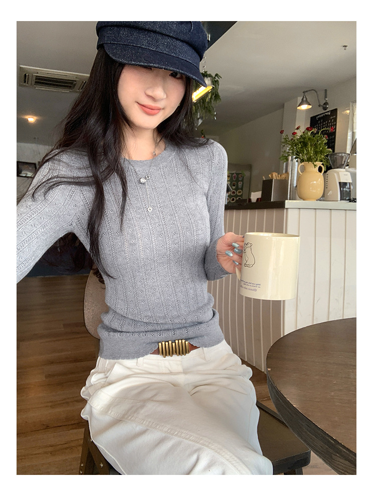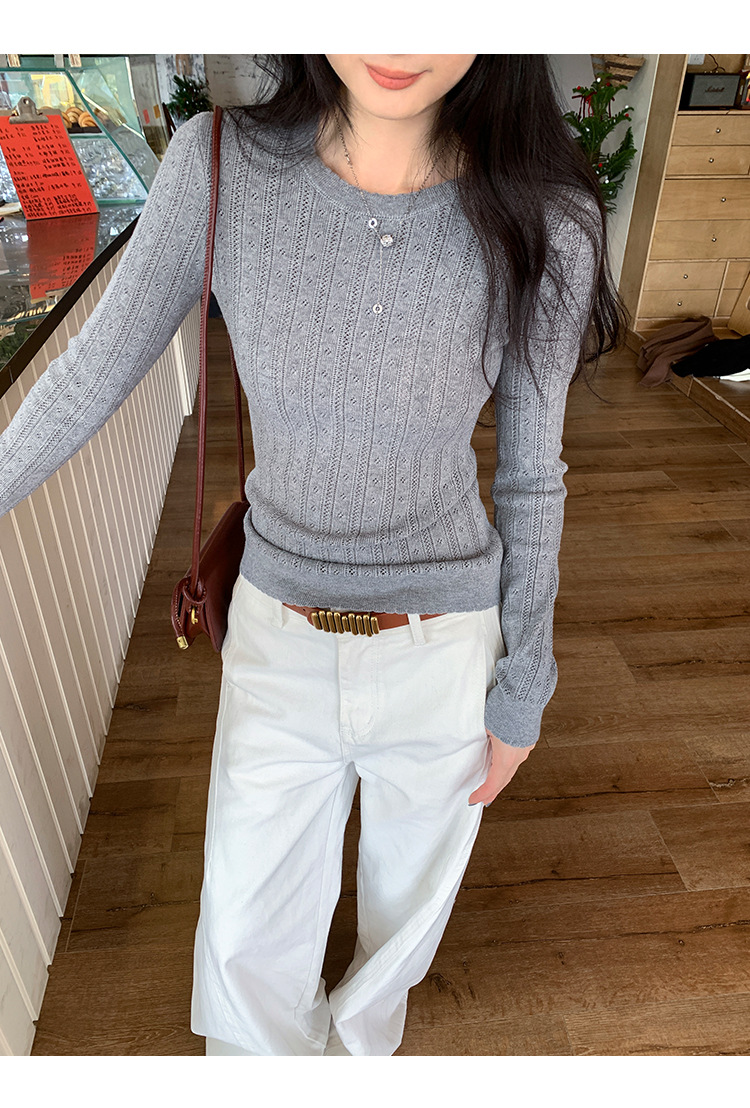 Unique Hollow Out Round Neck Slim Fit Knit Top for Women, Elegant and Slimming Innerwear