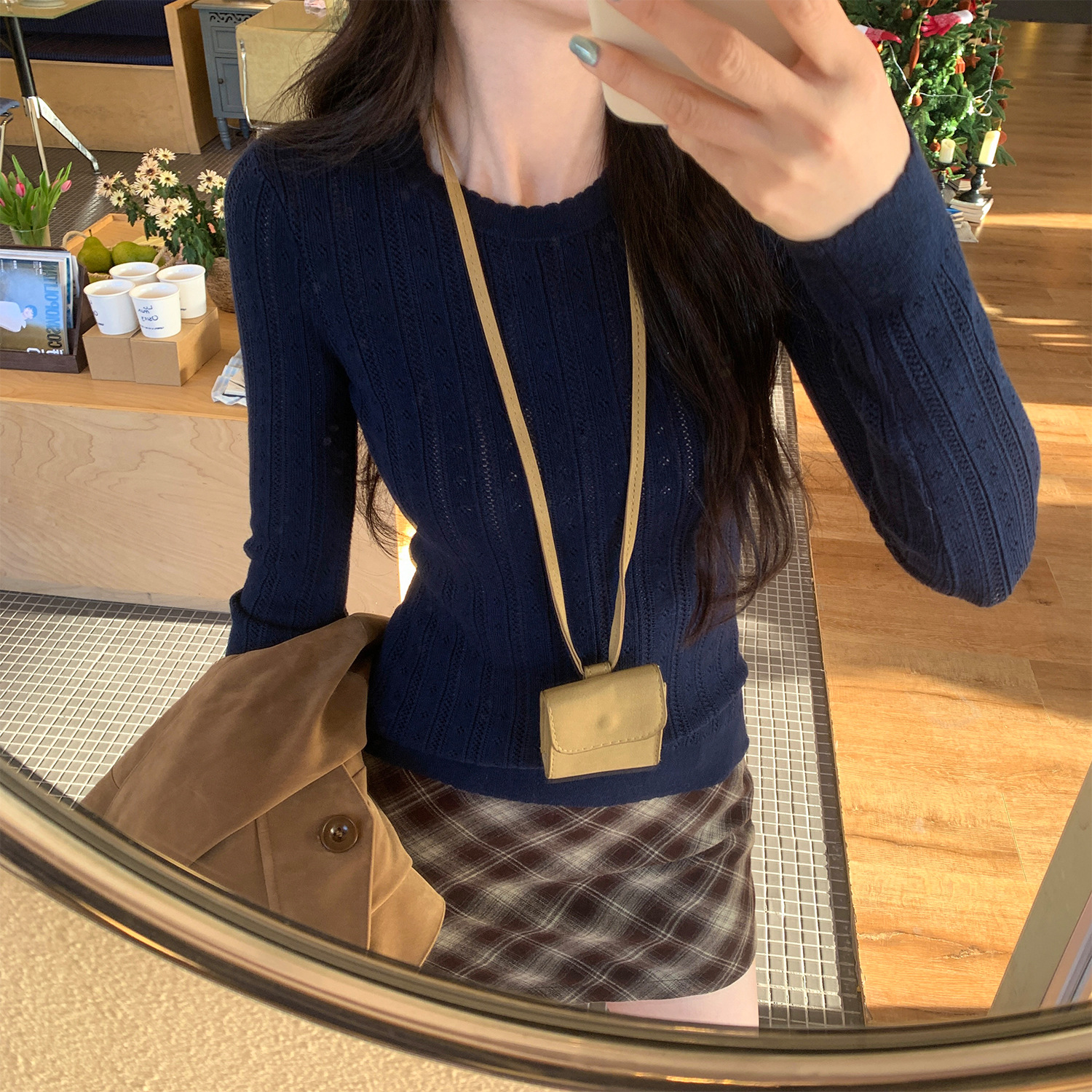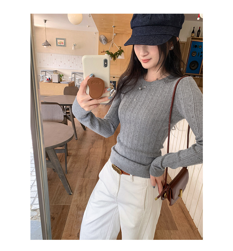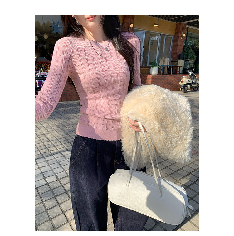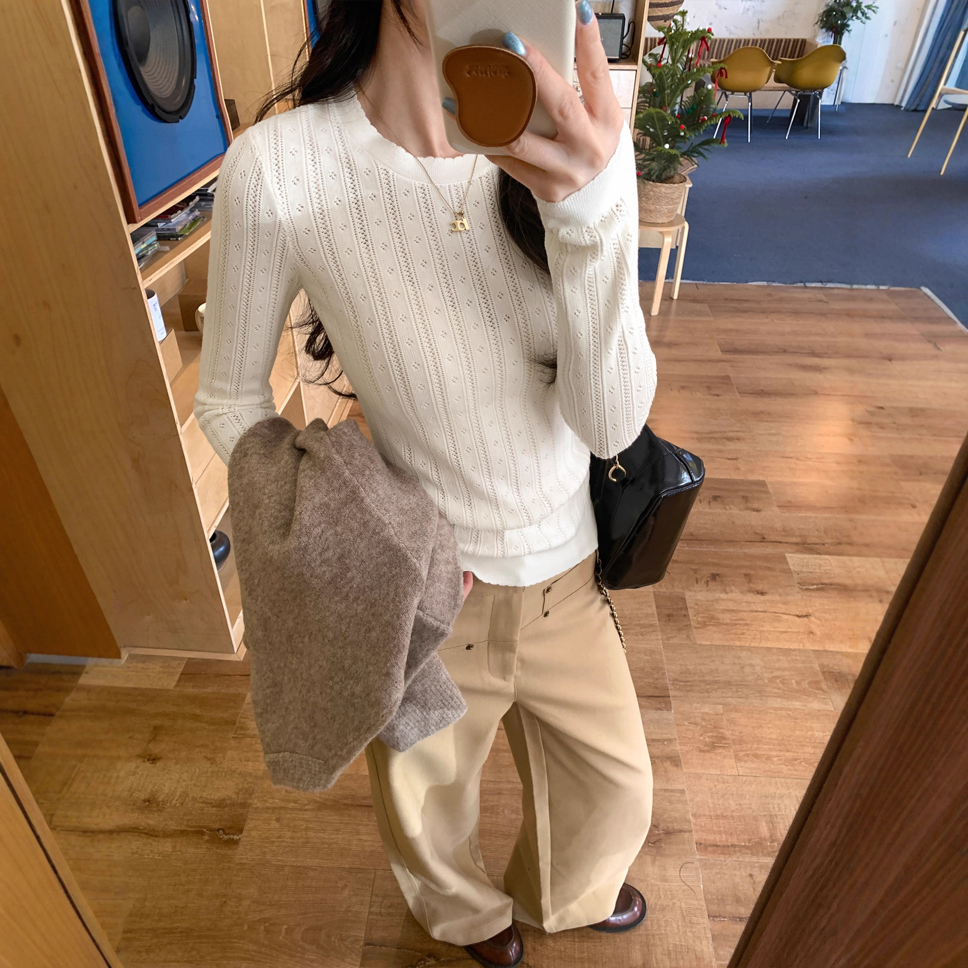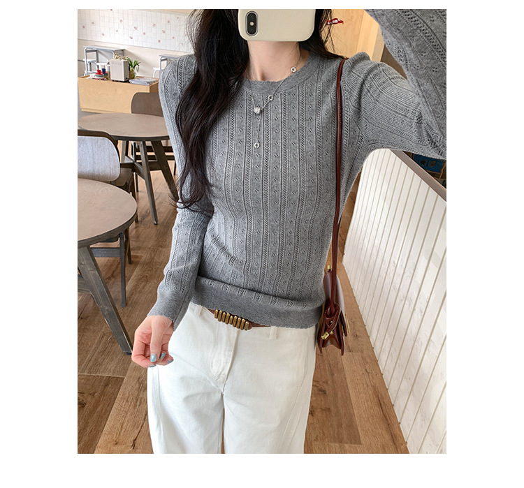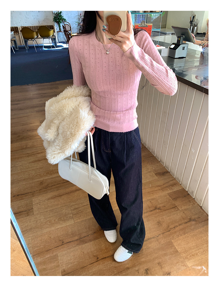 Unique Hollow Out Round Neck Slim Fit Knit Top for Women, Elegant and Slimming Innerwear