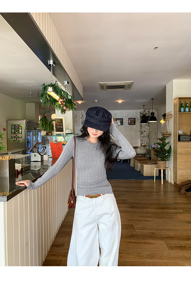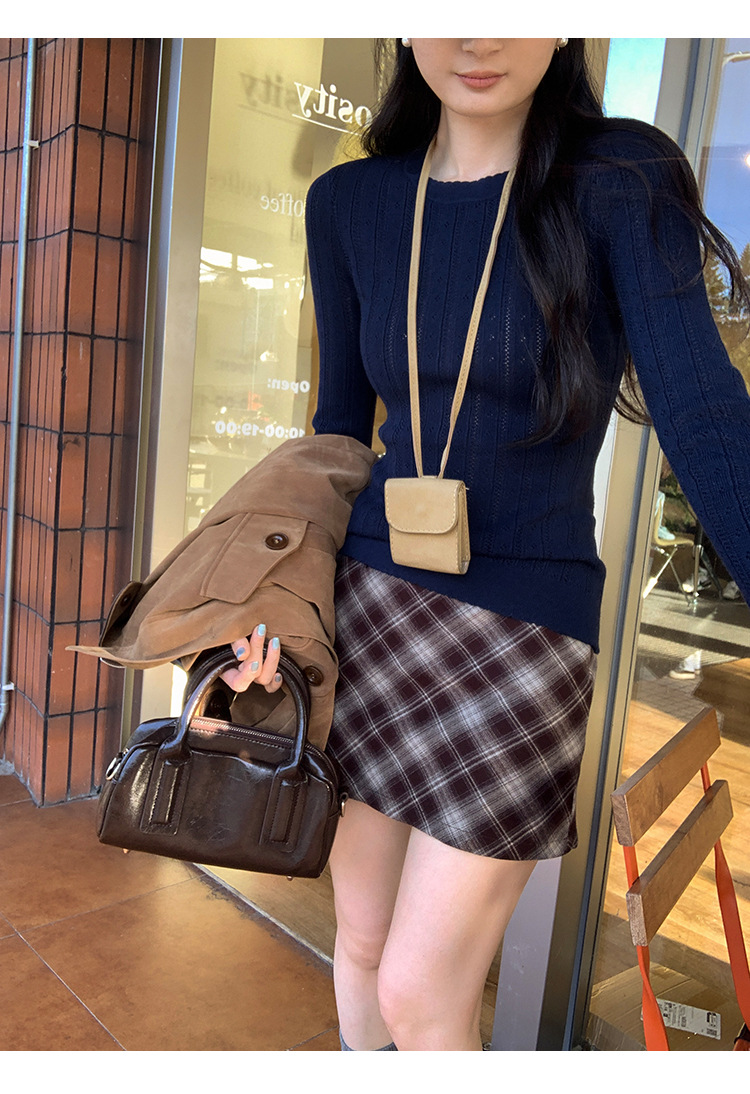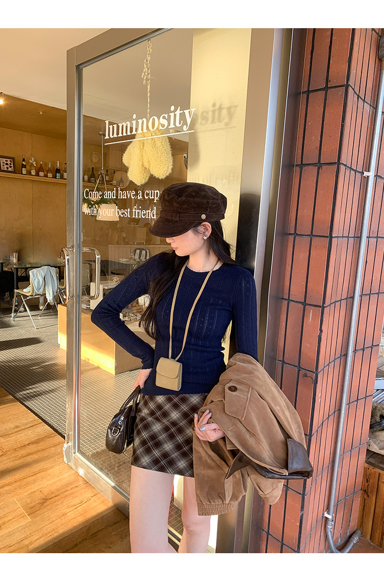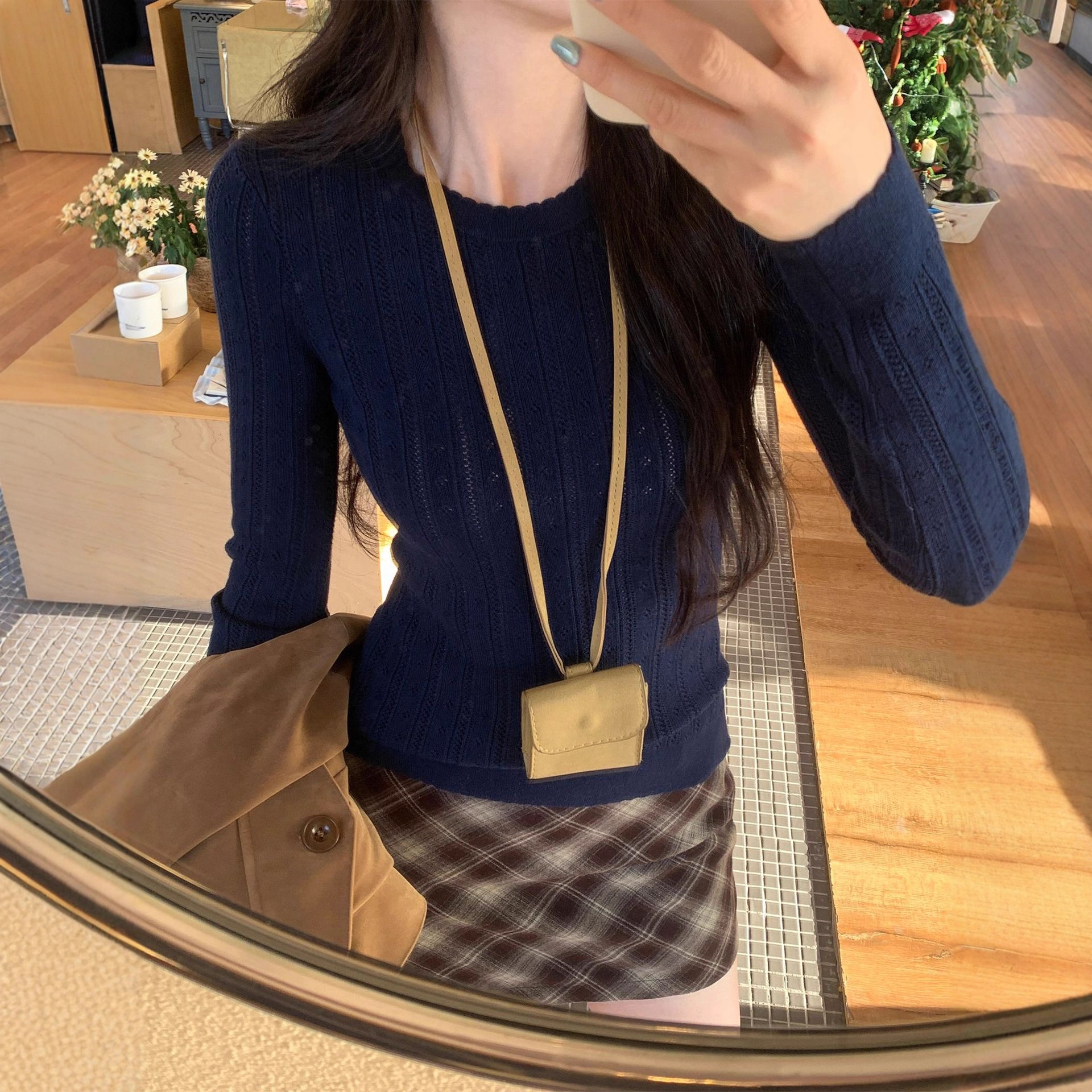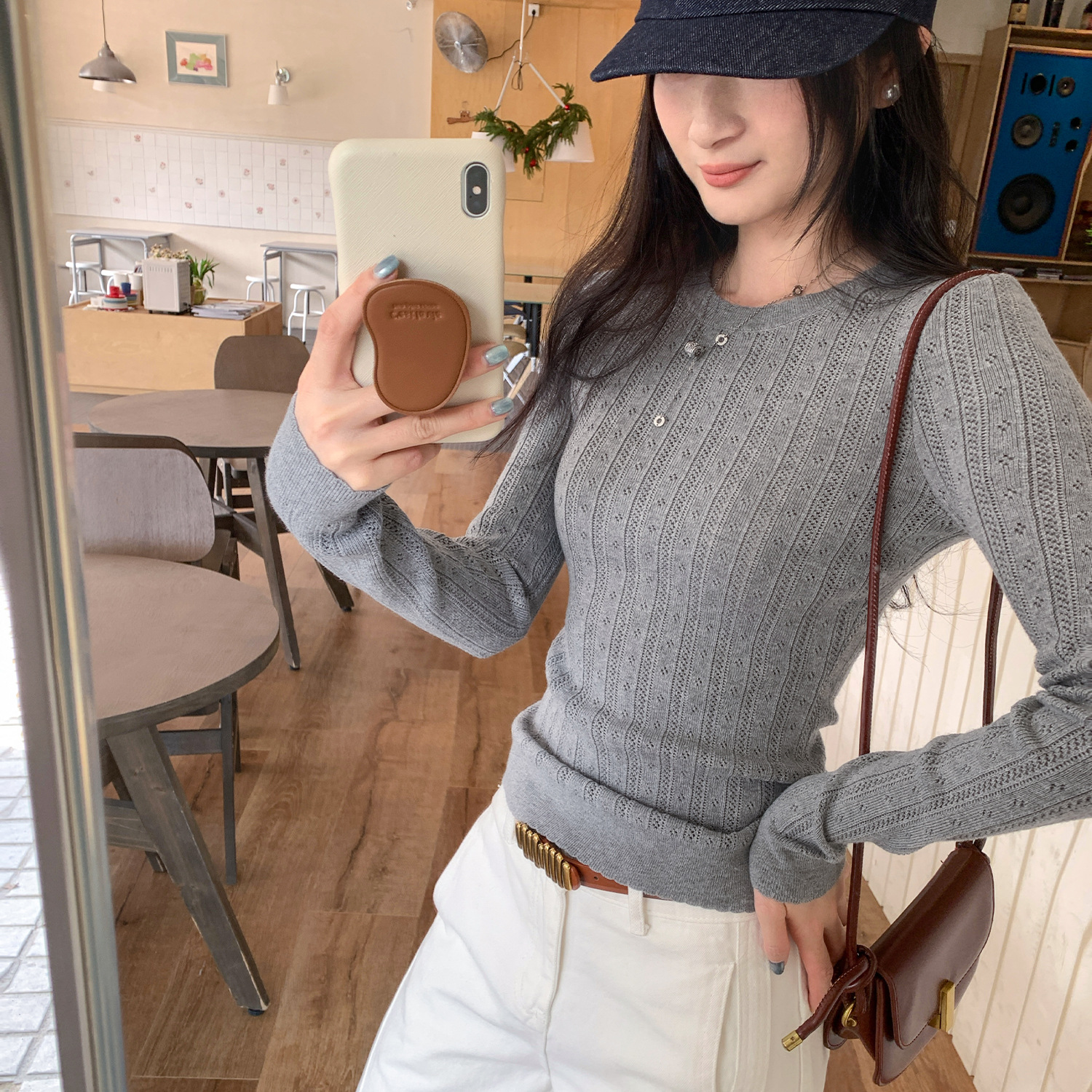 Unique Hollow Out Round Neck Slim Fit Knit Top for Women, Elegant and Slimming Innerwear